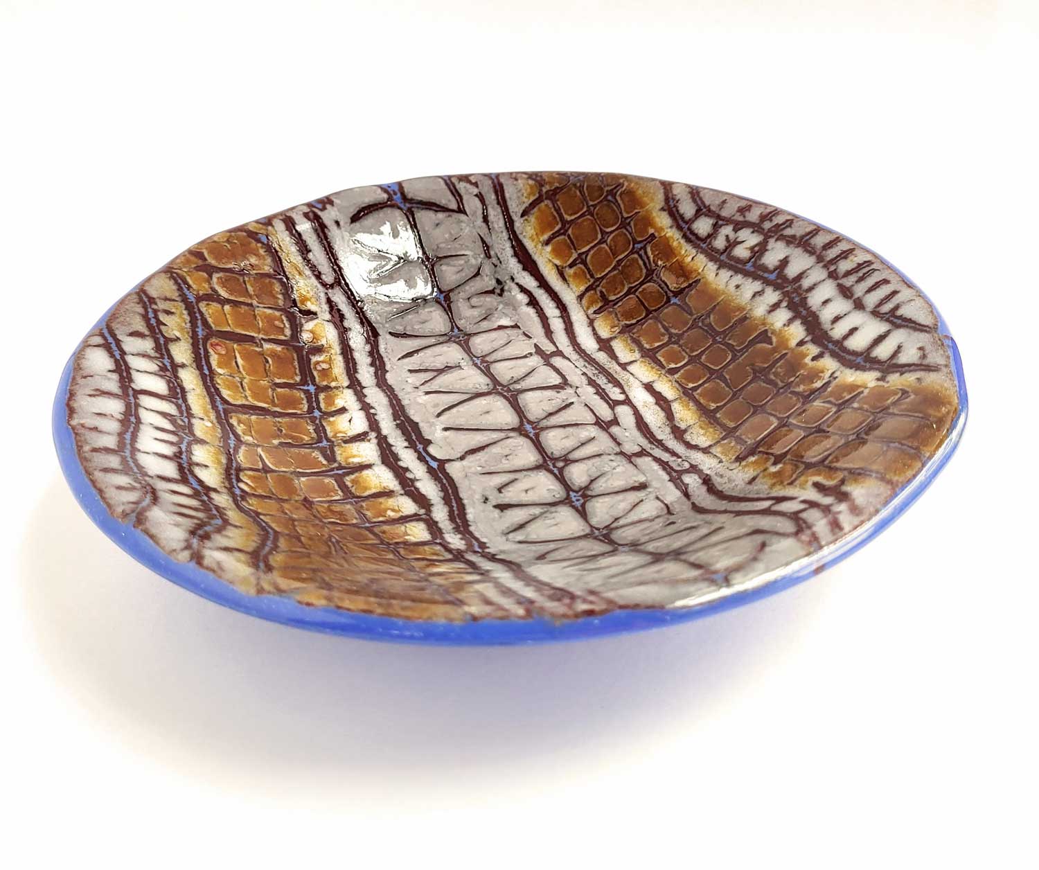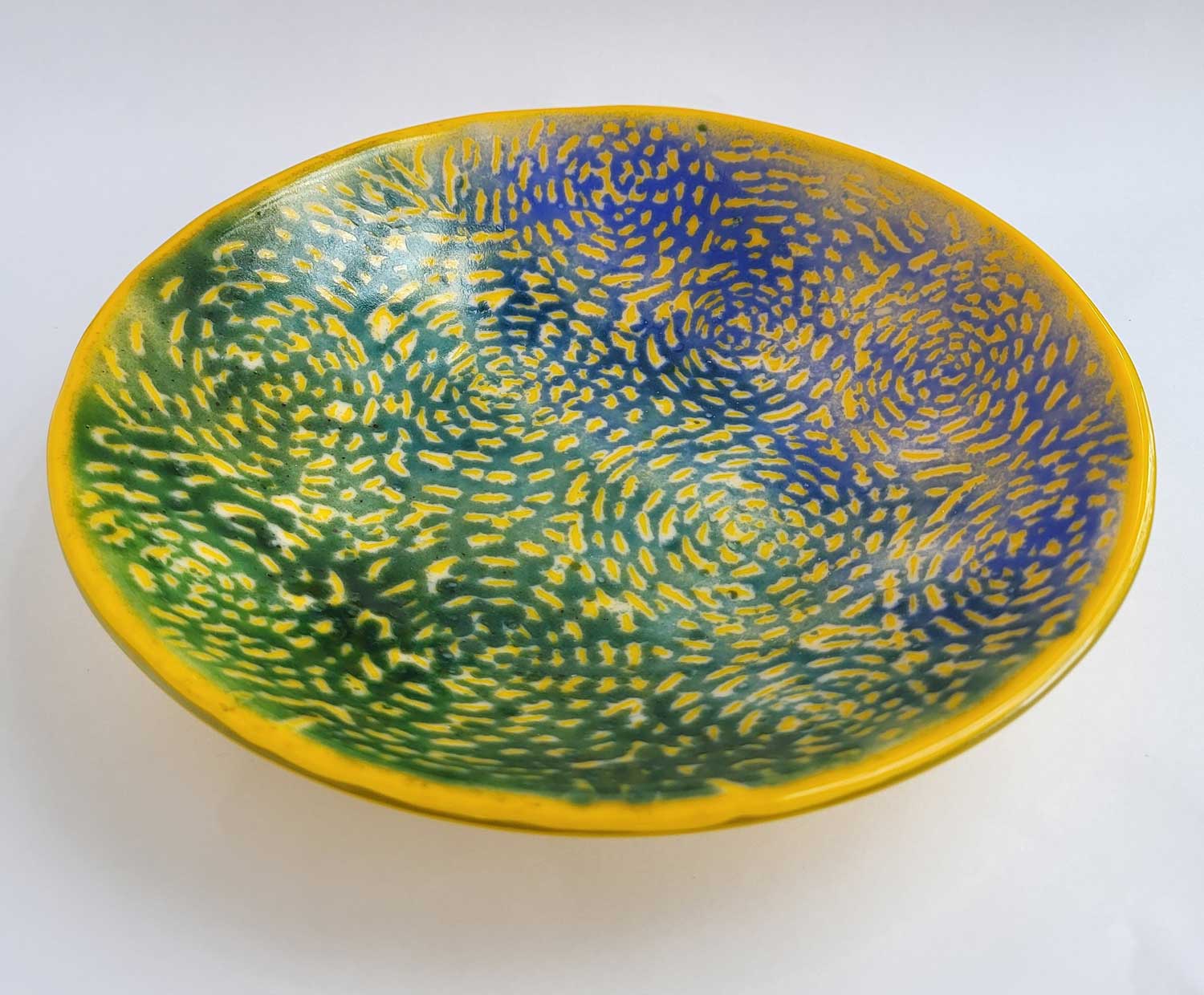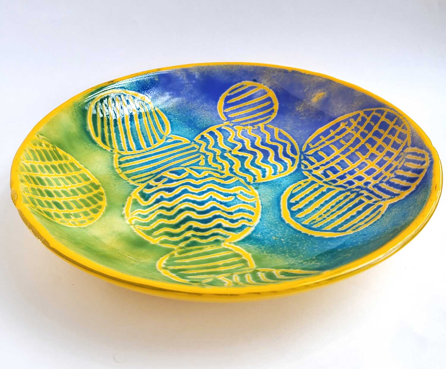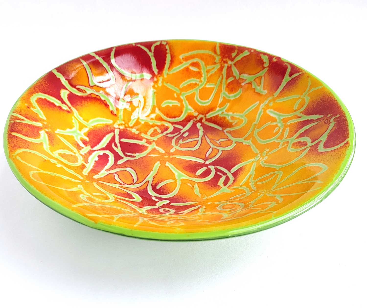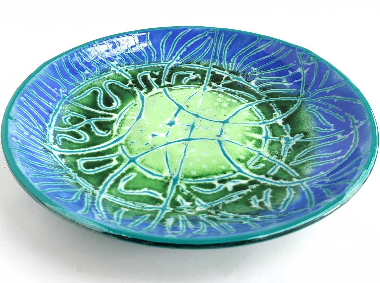 Handmade with care, this etched glass plate brings together vibrant fired glass and delicate hand-etched patterns that catch the light in beautiful ways. It’s just as at home holding a few treats as it is sitting out on display, adding a pop of color and personality to any space.